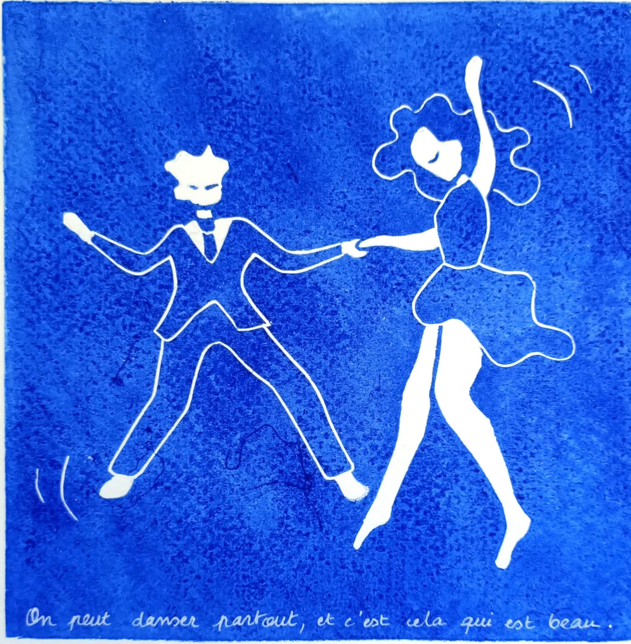 Couple de danseurs swing en linogravure