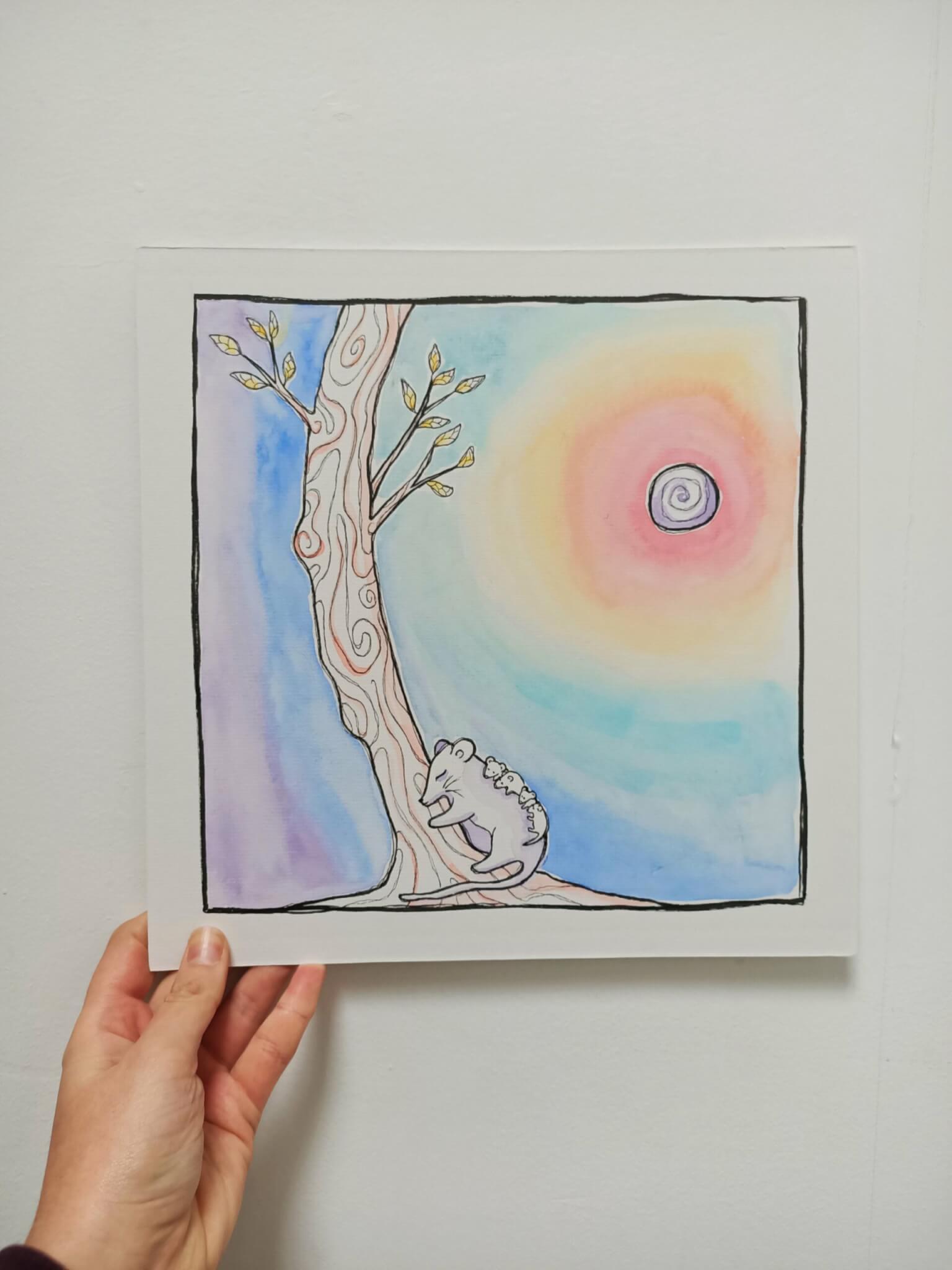 Aquarelle format 27x27cm sur papier cartonné.
