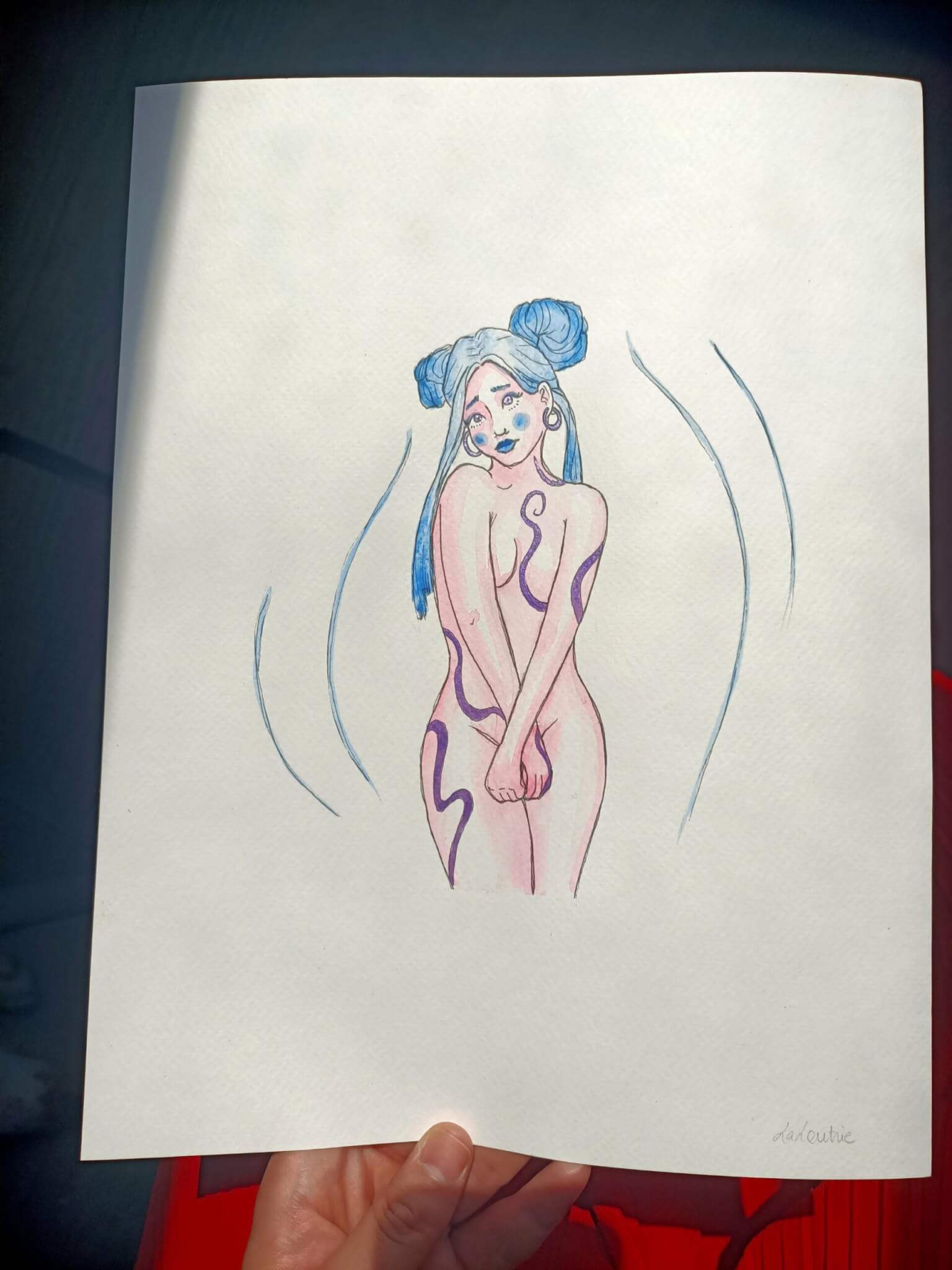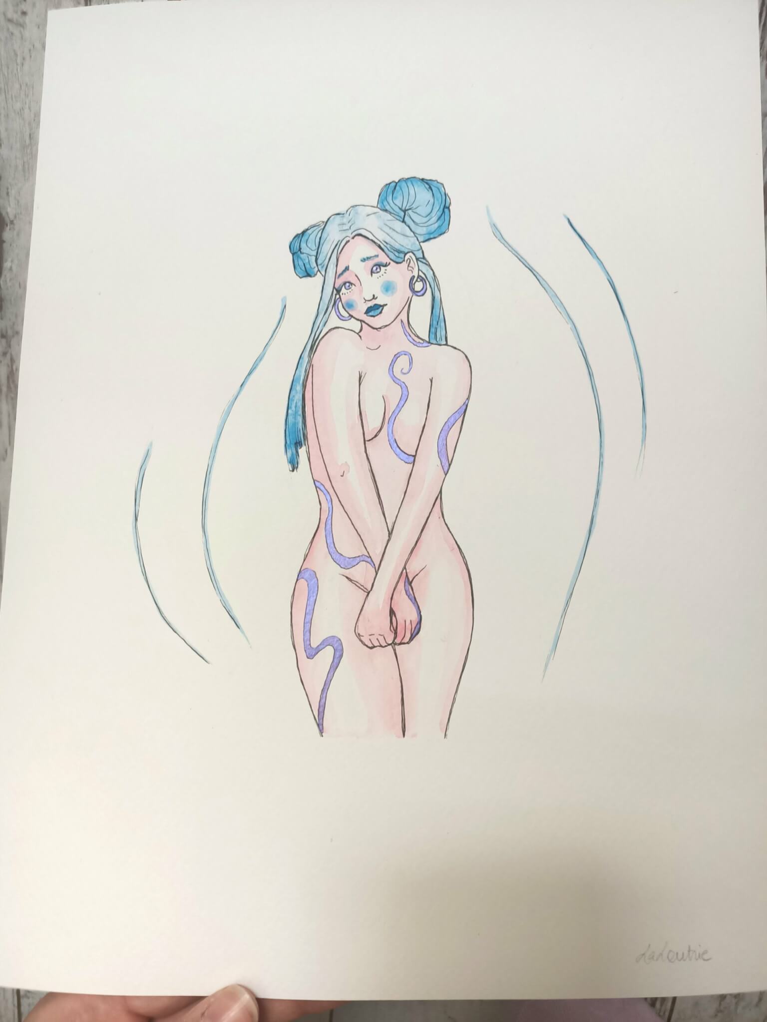 Technique : Encre de chine, encre pailletée et aquarelle sur papier aquarelle 300g.