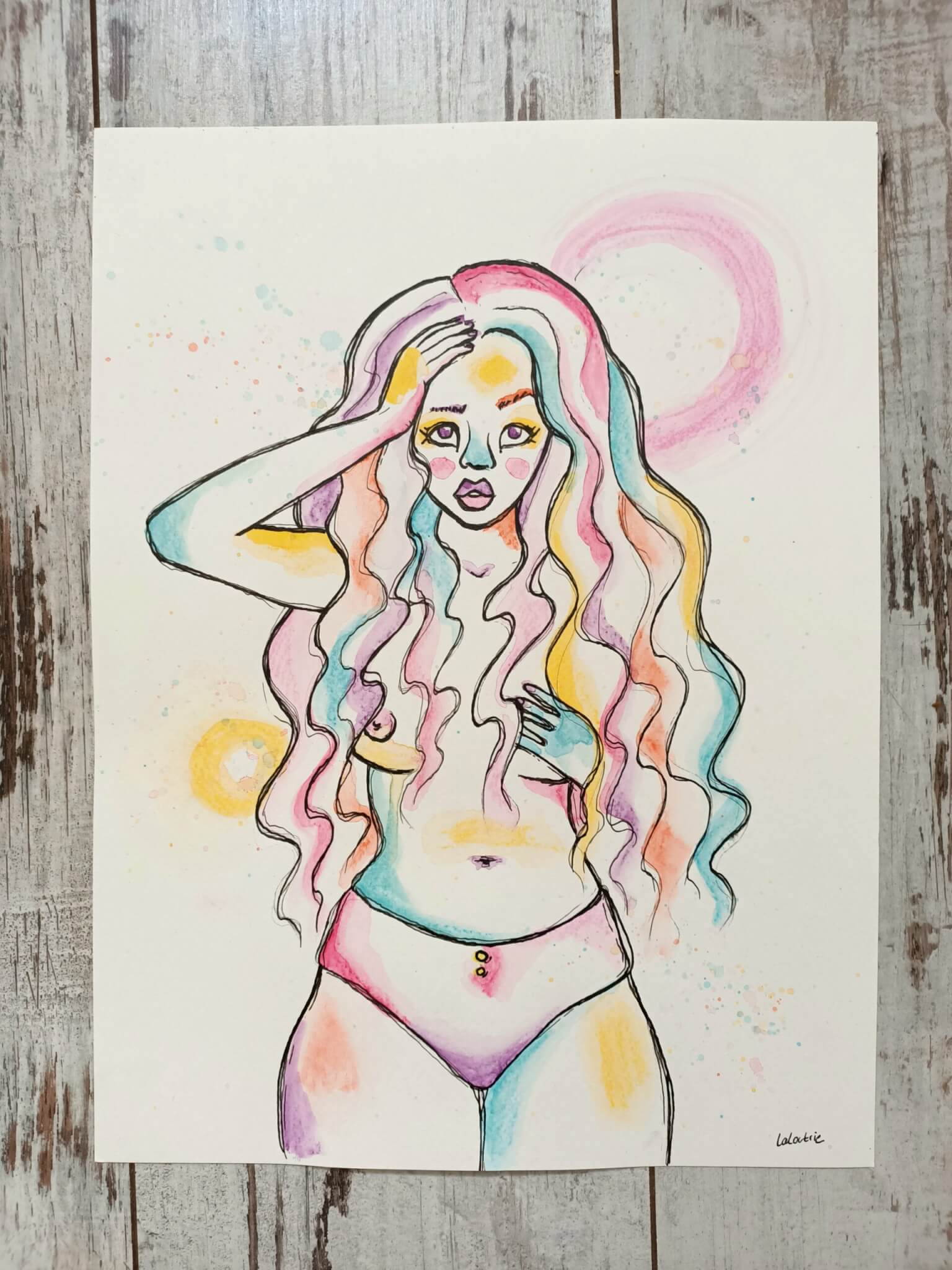 Technique : Encre de chine noire et aquarelle sur papier aquarelle 300g.