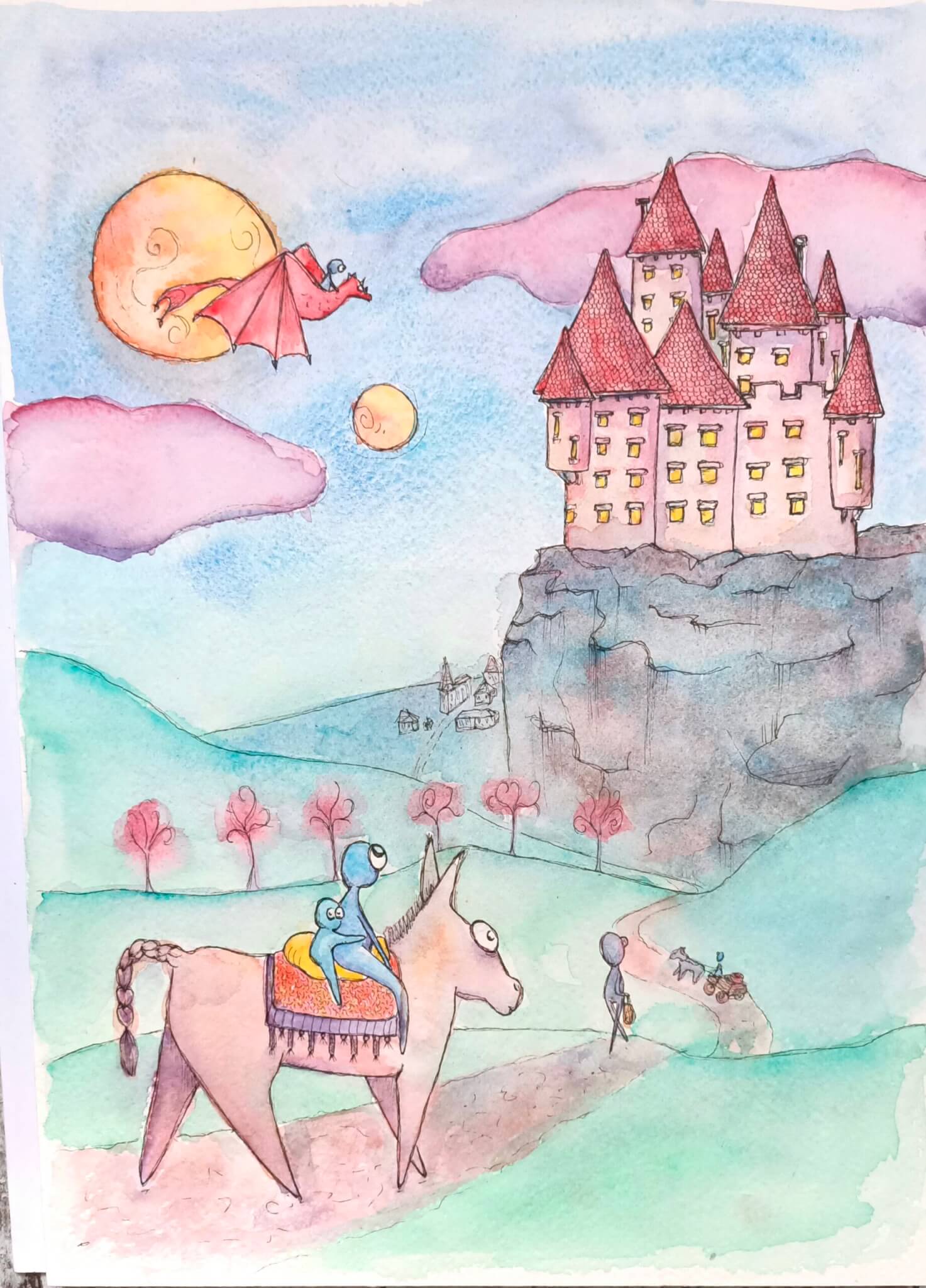 Avec la guerre, Touyi et ses parents s’étaient retrouvés sans rien d’autre que l’âne et le baluchon de vivres avec lesquels ils s’étaient enfuis. Après des jours de marche, ils arrivaient enfin devant le château du seigneur Petra, où ils espéraient trouver refuge.