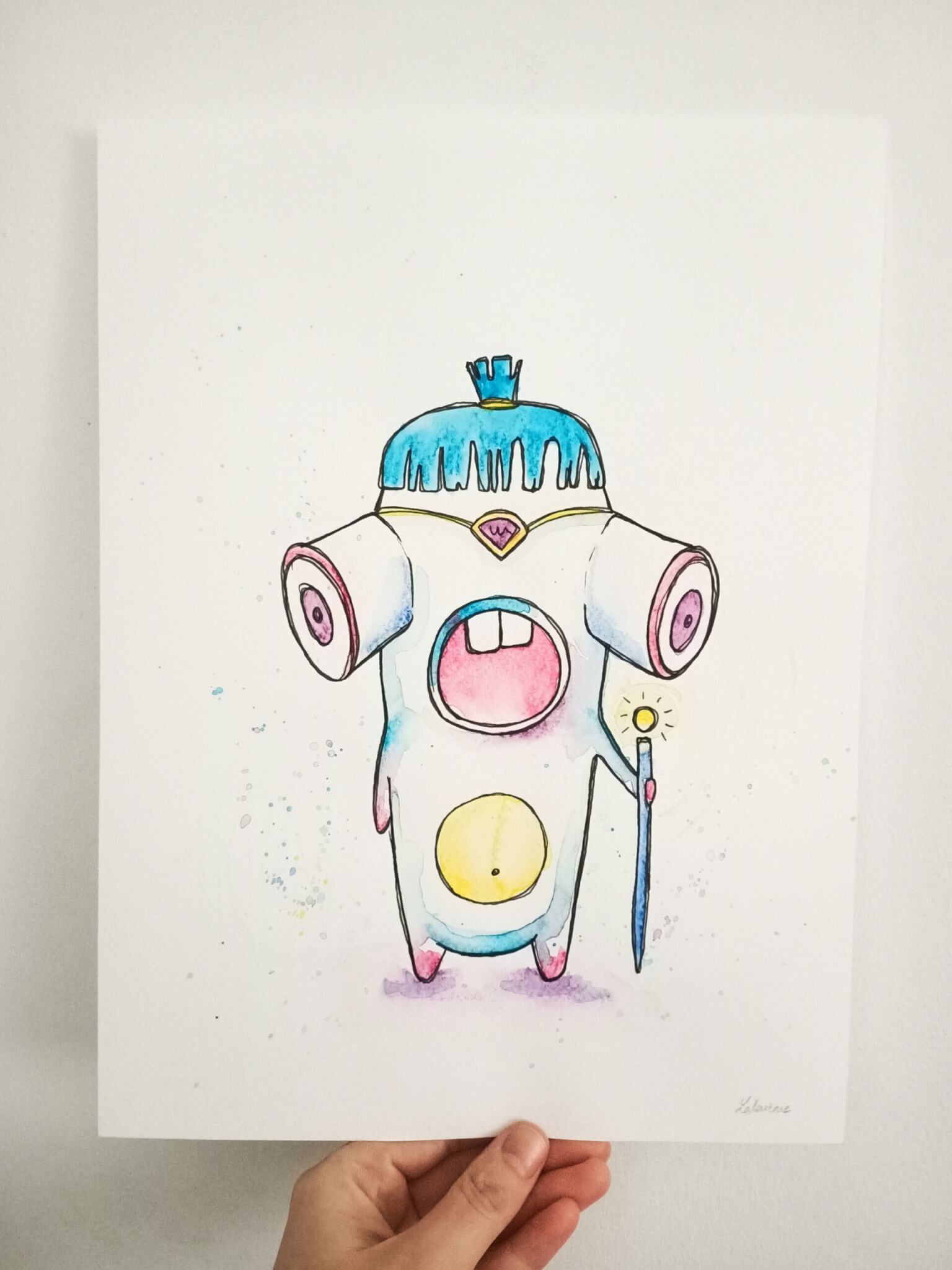 Œuvre originale. Cette aquarelle fait partie des créatures farfelues.