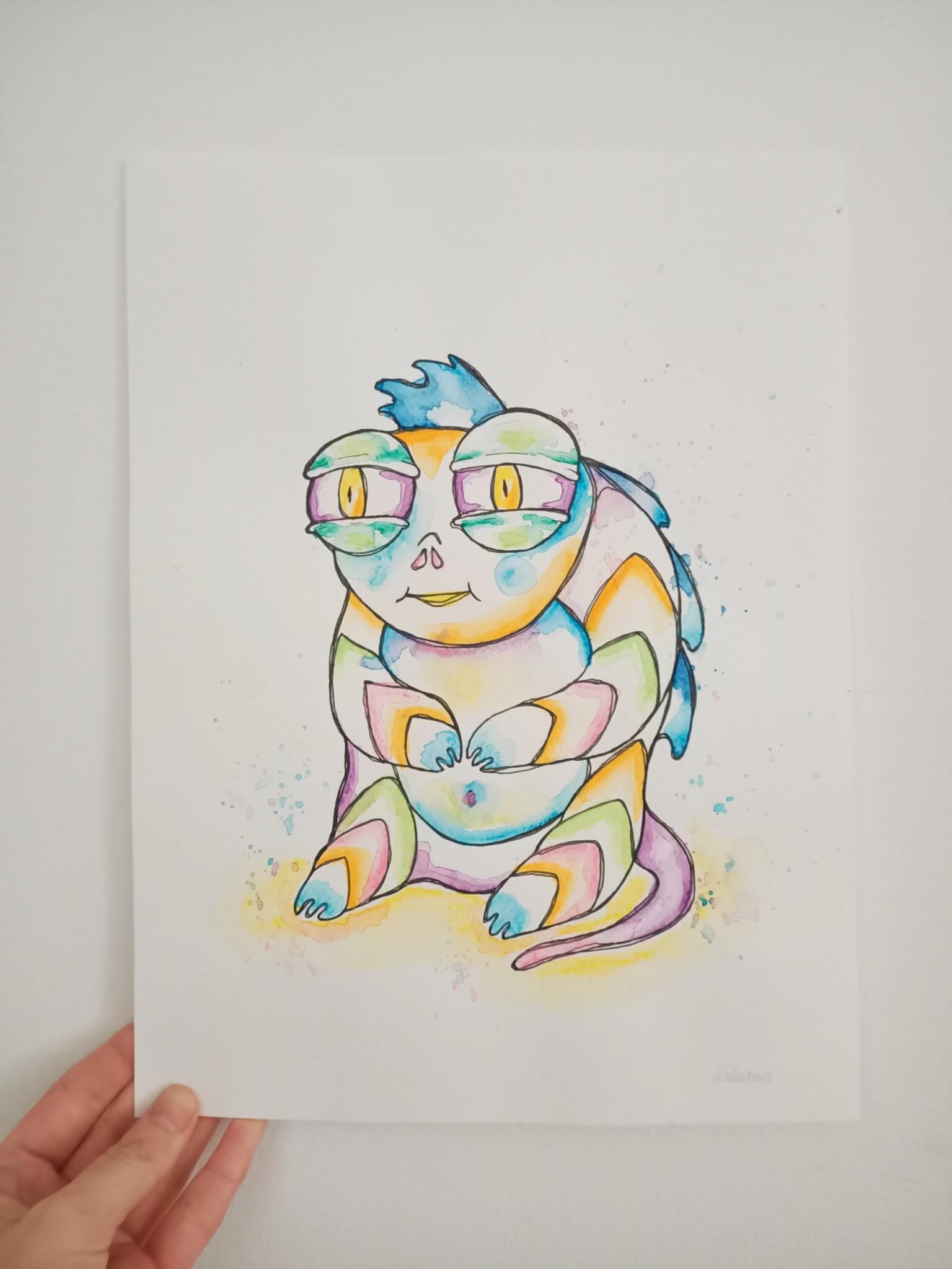 Œuvre originale. Cette aquarelle fait partie des créatures farfelues.