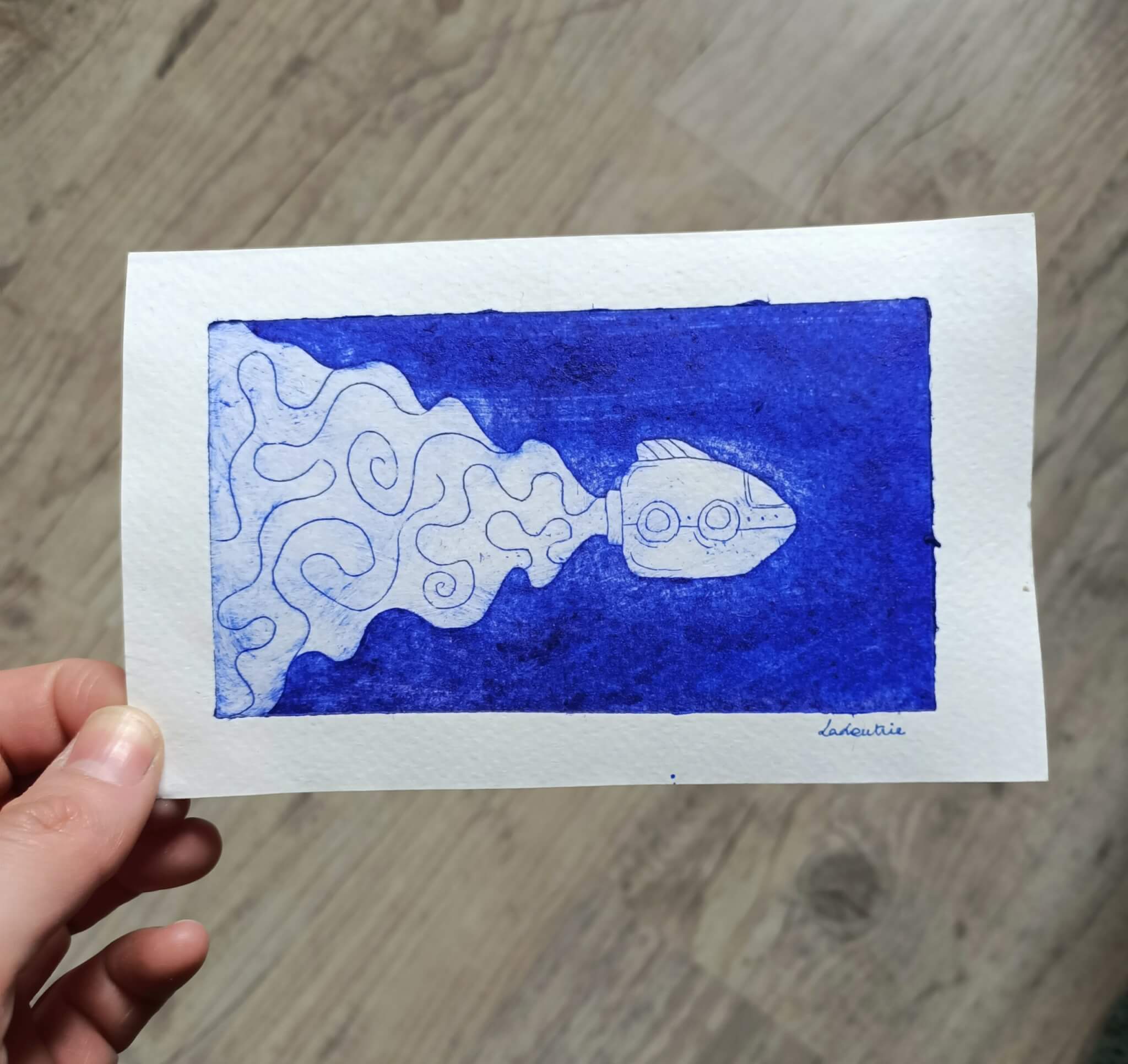 Selon la taille de l'œuvre, celle-ci sera protégée et envoyée dans une lettre cartonnée ou dans un tube d'expédition.