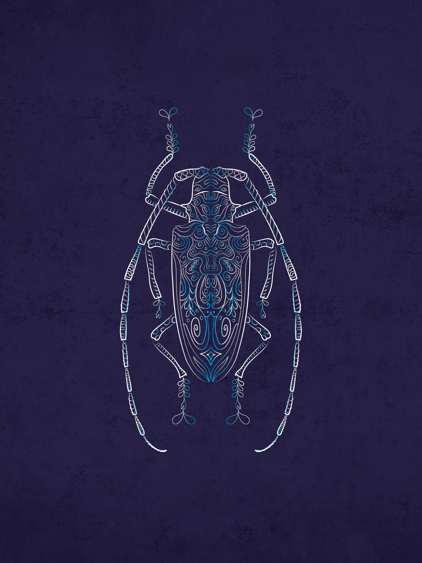J’ai commencé la série des insectes par un scarabée, dont j’adore les reflets irisés au milieu de la forêt sombre.