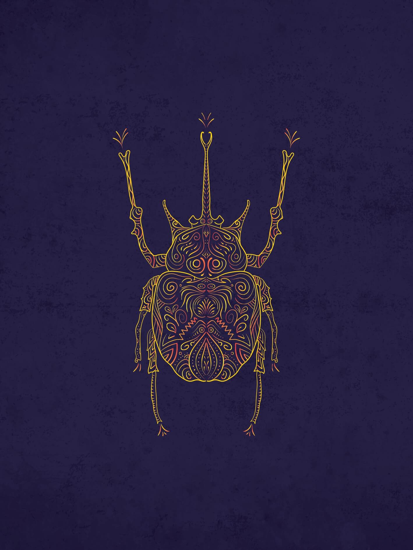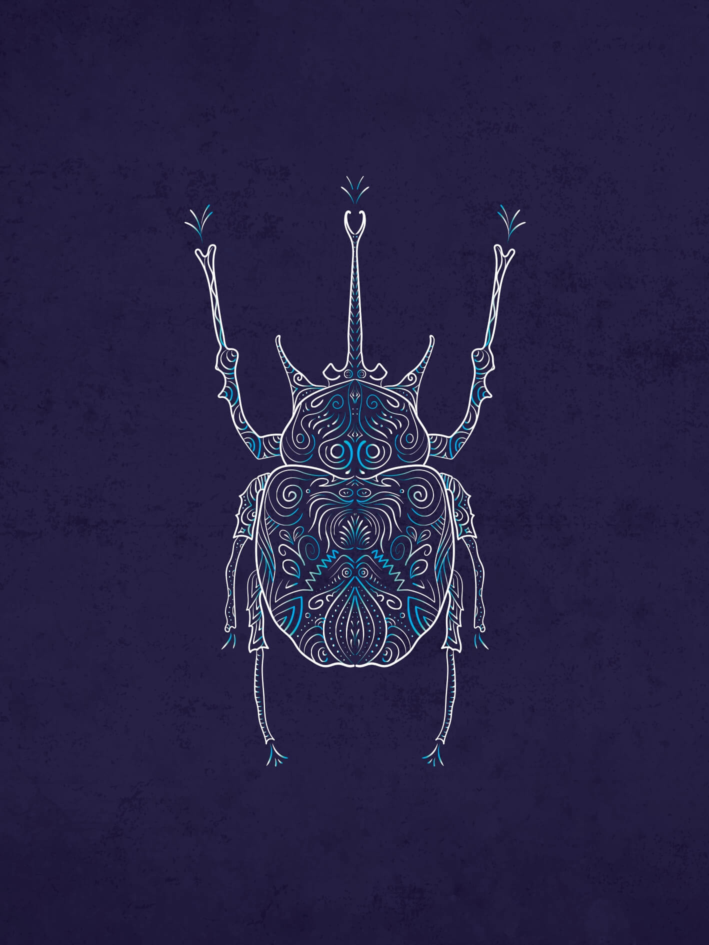 J’ai commencé la série des insectes par un scarabée, dont j’adore les reflets irisés au milieu de la forêt sombre.