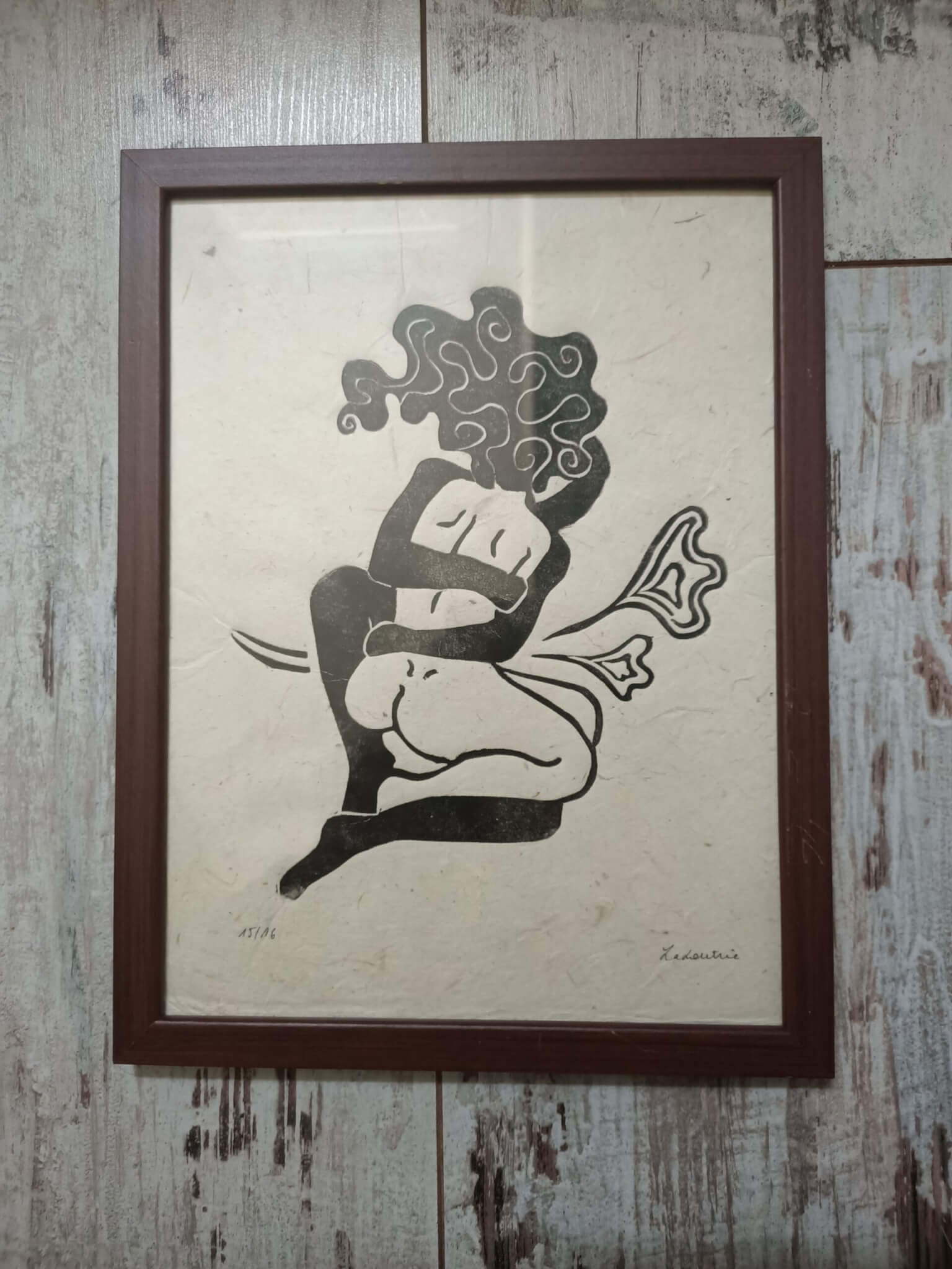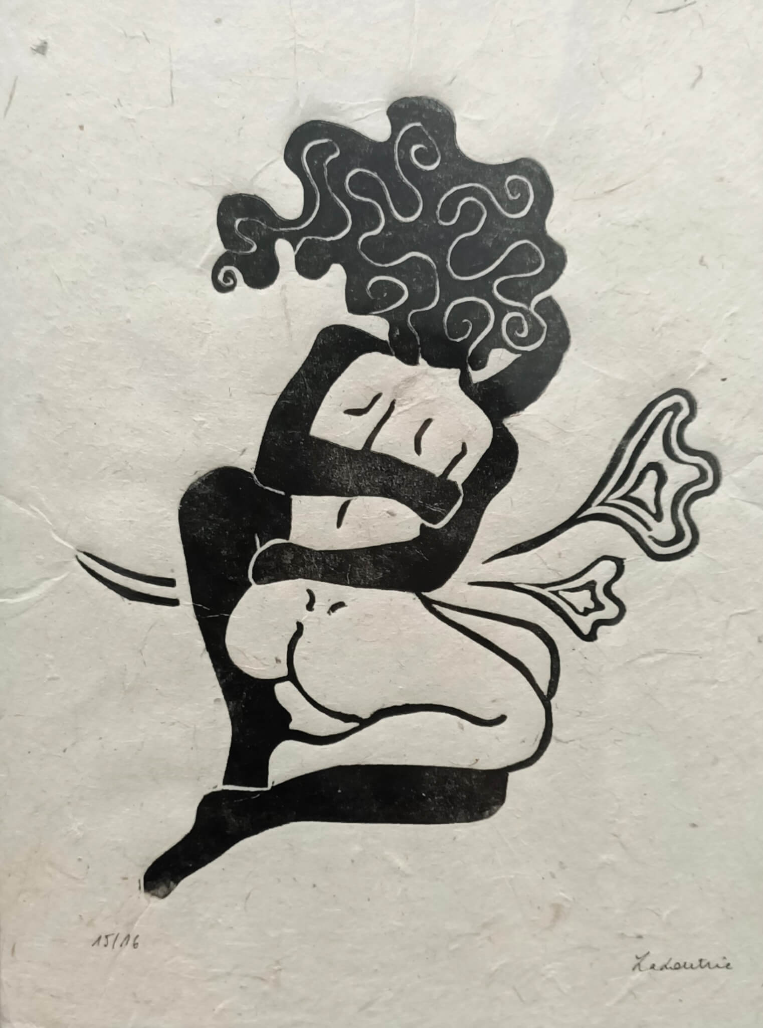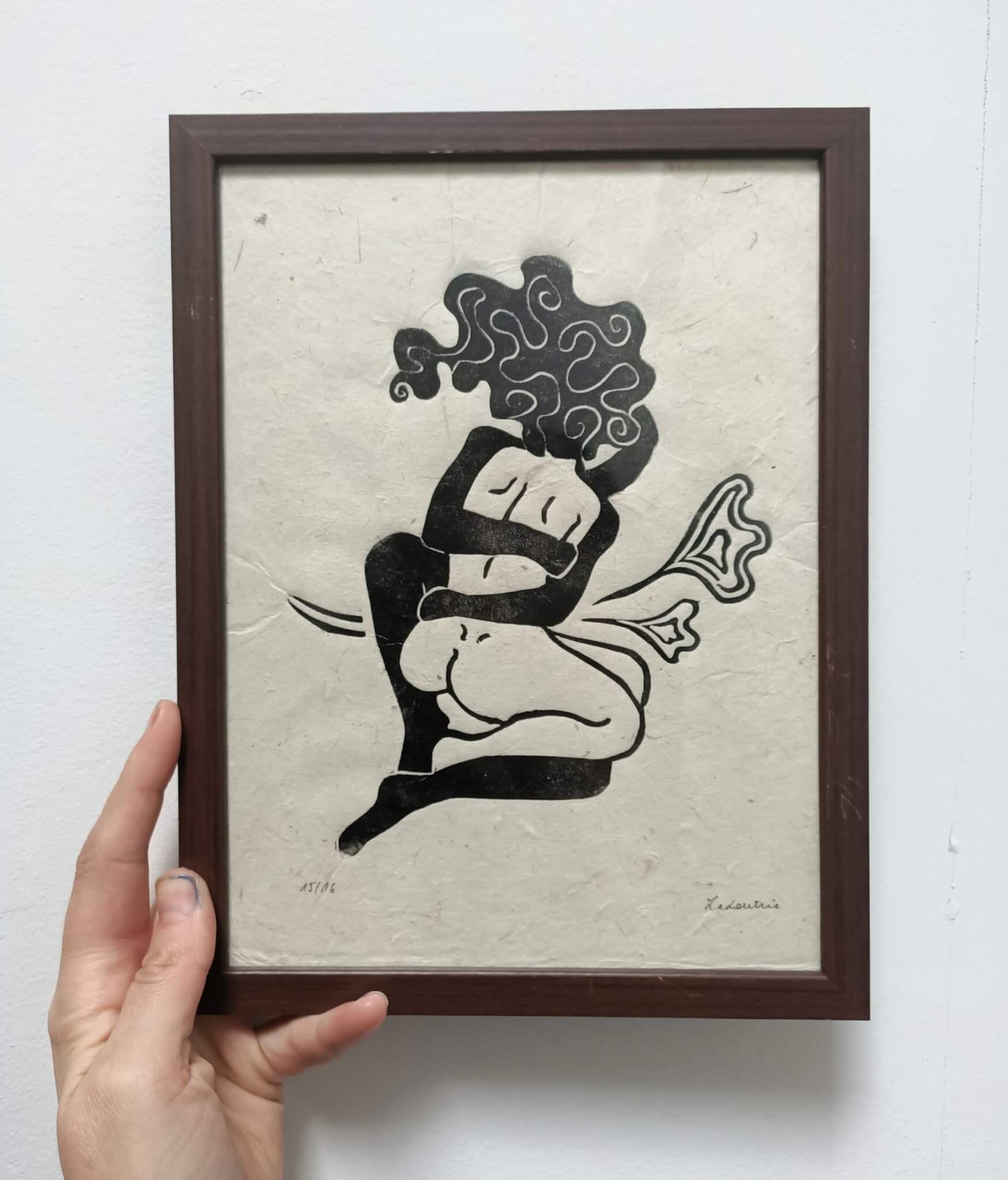 ImprimĂ© Ă  l’encre Taille douce Charbonnel noire sur papier lokta nĂ©palais, c’est un papier naturel très fin.