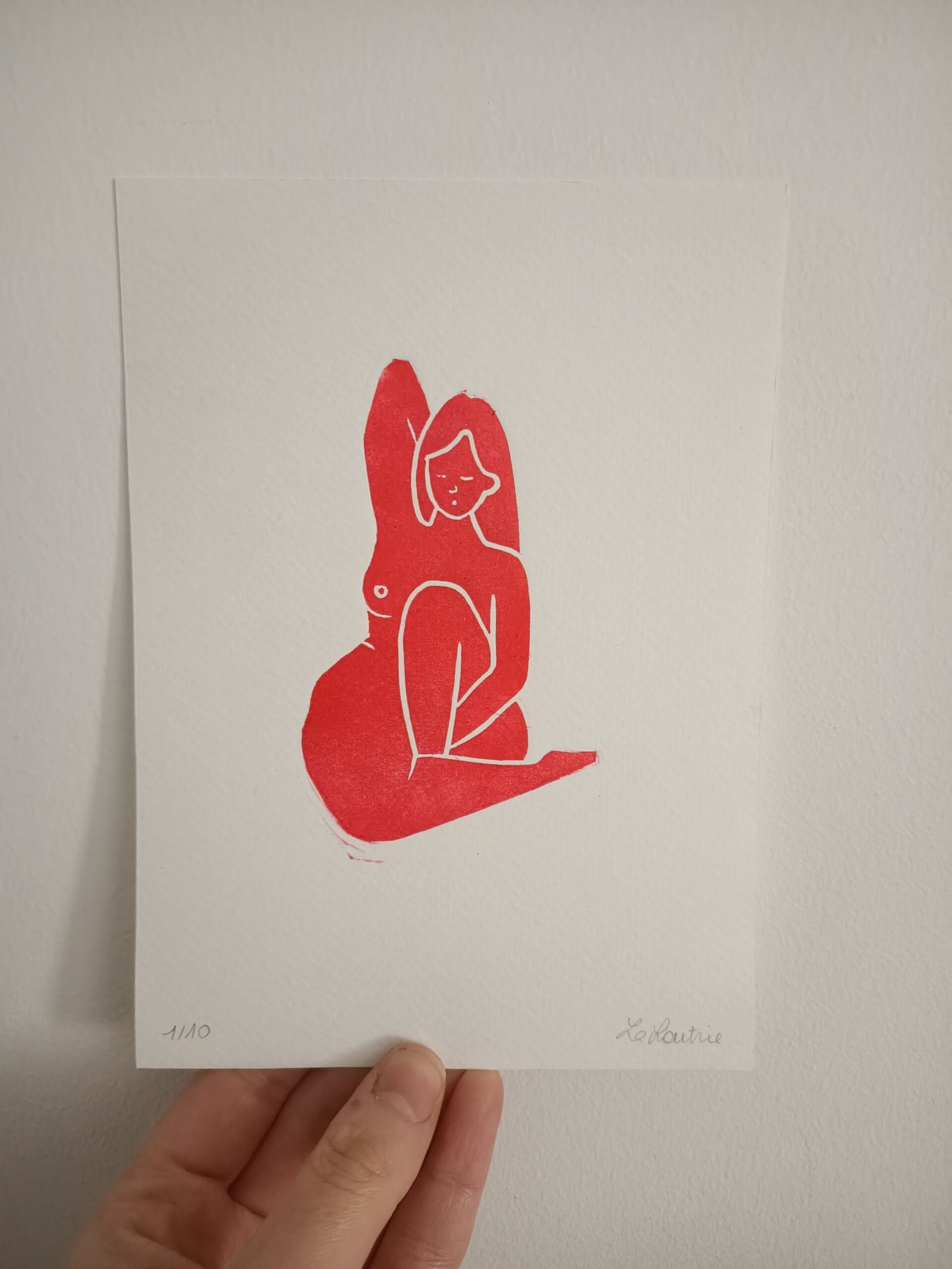 Le rouge simple : Imprimé en 10 exemplaires à l’encre Taille douce Charbonnel rouge rubis.